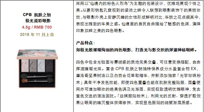 在谈到今年的限量系列时,CPB肌肤之钥商务策划与运营部副总裁Mizuki Hashimoto女士表示:“2018年限量系列的主题是「解密奇幻仙境」。CPB肌肤之钥将以它独一无二的视角,呈现一个充满神秘与趣味的奇幻世界,也将现代、优雅的理念融入其中。我们希望陪伴每一位女性,开启这段充满奇思妙想的梦幻之旅。”