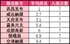成都区域的微信号发展较为活跃,账号类型多样;非成都区域的微信号,主要是当地的政务媒体和生活服务号在传播量上占优。