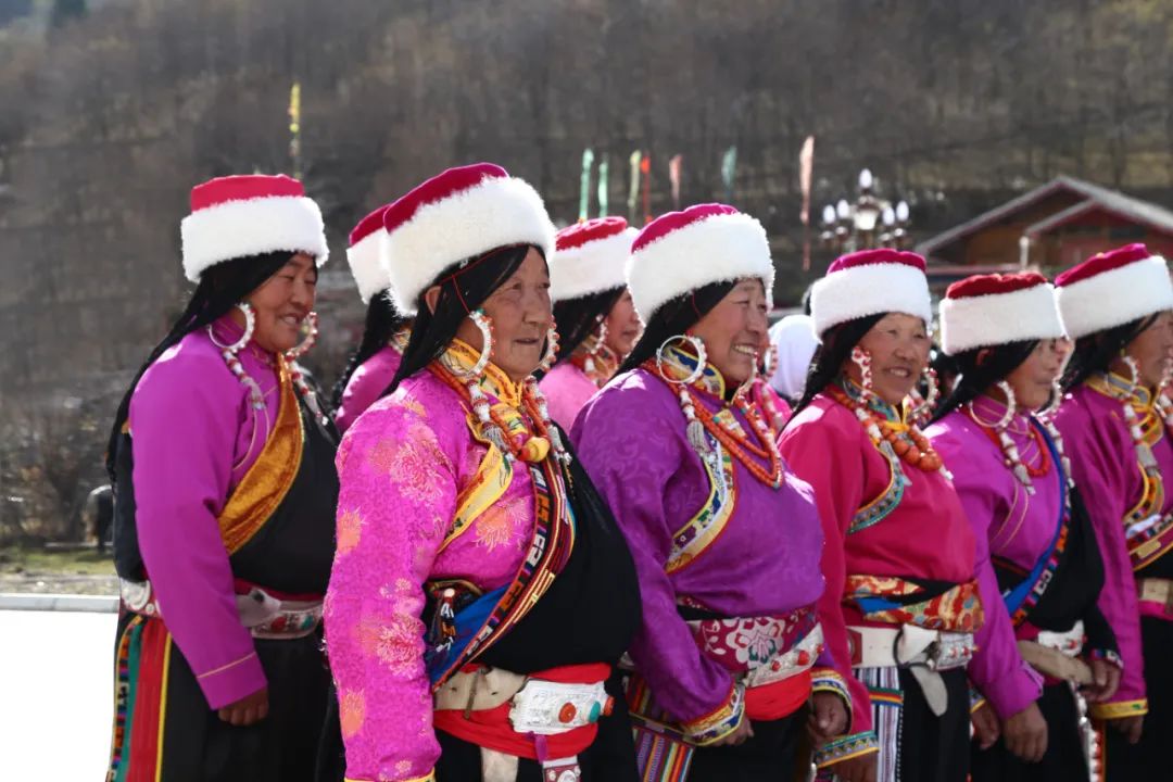 不论男女老少,大家身着艳丽的藏族服装,合围拉手成圈,先慢后快: