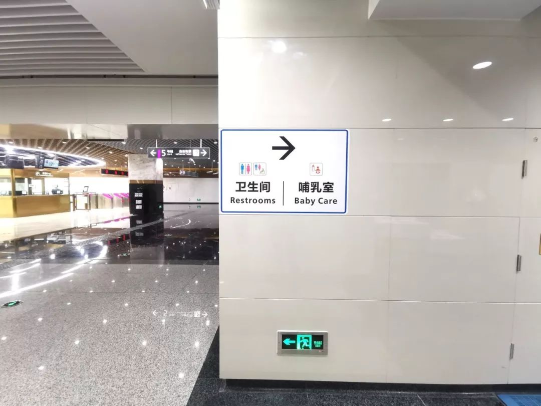 同时新线还优化了出入口时刻牌,将 无障碍电梯、哺乳室、卫生间及线网图 等信息在出入口进行整合,使乘客在进站前就对车站基础信息一目了然。