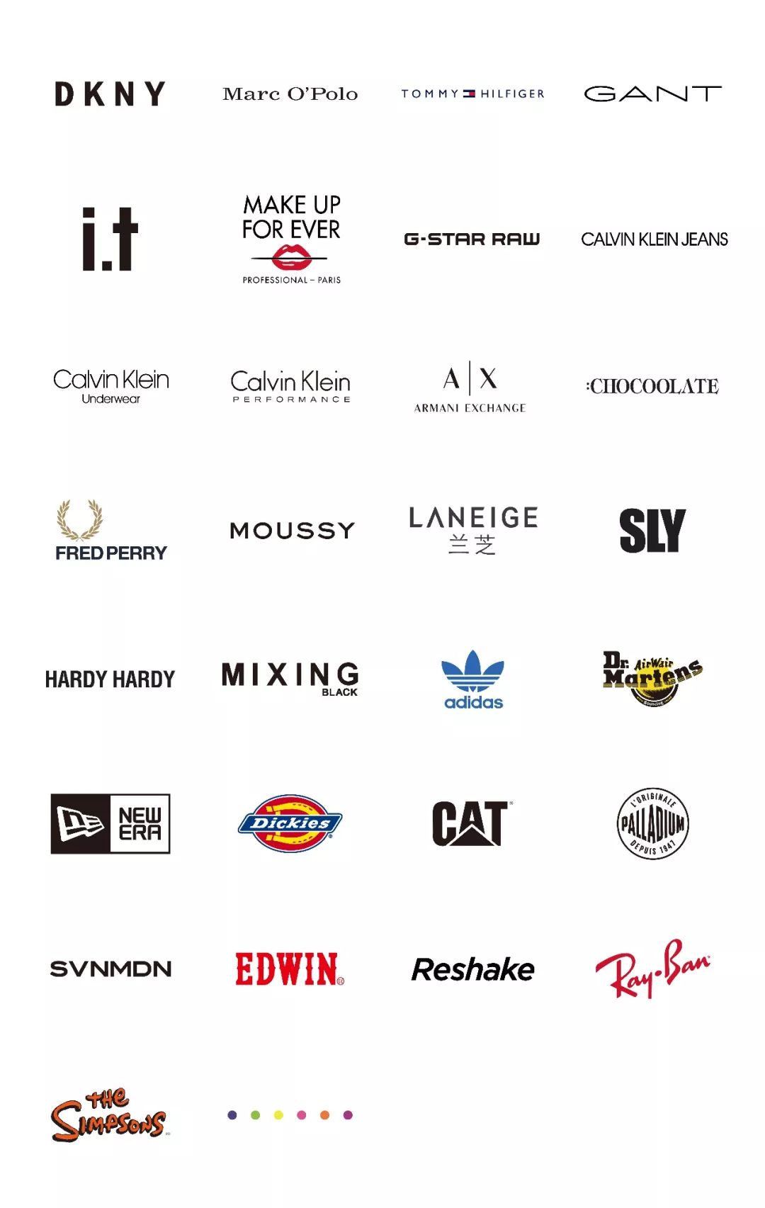 除了以上重点讲到的品牌,MAKE UP FOR EVER、CALVIN KLEIN UNDERWEAR、fred perry、moussy、sly、hardy hardy、The Simpsons、Dr.Martens、New Era、MIXING BLACK、EDWIN、DICKIES、PALLADIUM、reshake,也将开设城南首店。