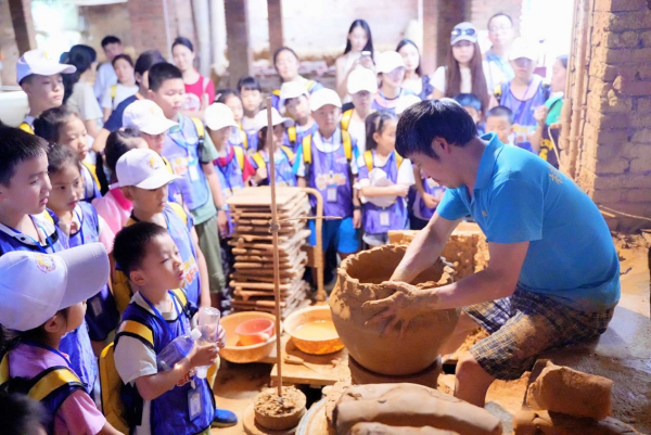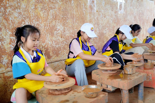 在桂花龙窑博物馆,同学们在专业讲解老师带领下参观龙窑旧址,了解桂花龙窑的历史和发展,欣赏精美的陶制品,近距离感受非遗技艺的魅力,并亲手制作属于自己的陶器。