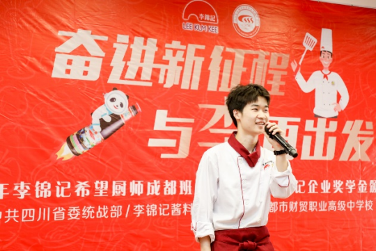 时间倒回到6年前的2018年,李锦记希望厨师项目第一次来到革命老区江西面试。15岁的刘昶刚刚参加完中考,在那个学霸频出的萍乡市莲花县,他的分数并没法进入普通高中,家里的经济条件也不允许他复读。正当迷茫不知所措时,他从老师那得知,李锦记有一个公益项目,可以全额资助前往国家重点职高学习中餐烹饪,未来就业前景十分不错。心动的刘昶报名、参加笔试、面试,顺利成为希望厨师成都班第一批江西的同学,开始了他“学习、传承并发扬中华优秀饮食文化”的道路。