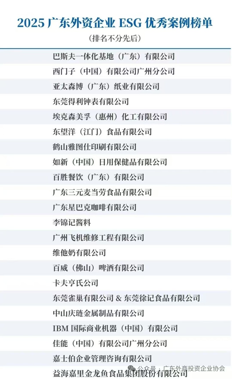 近日,如新(中国)凭借在可持续发展与企业社会责任领域的突出表现,荣登广东外商投资企业协会发布的“2025广东外资企业ESG优秀案例榜单”。该榜单旨在展示外资企业在中国,特别是在粤港澳大湾区的环境、社会及治理(ESG)实践成果,评选基于企业在绿色制造、低碳创新、员工福祉、供应链管理、公益慈善以及社会责任与治理体系等方面的自主申报内容,依据国际ESG评价体系并结合中国本地化标准进行系统评估与综合评分后产生。与如新一同入选的还有巴斯夫、西门子、百胜餐饮、星巴克等共22家知名企业。