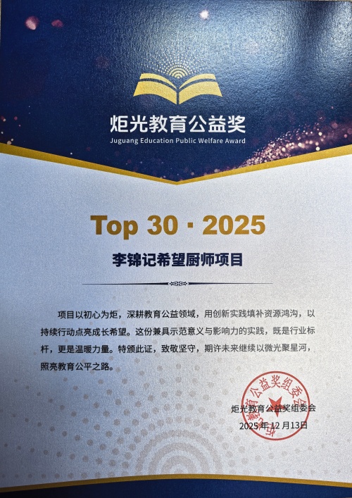 李锦记希望厨师项目荣膺首届炬光教育公益TOP30