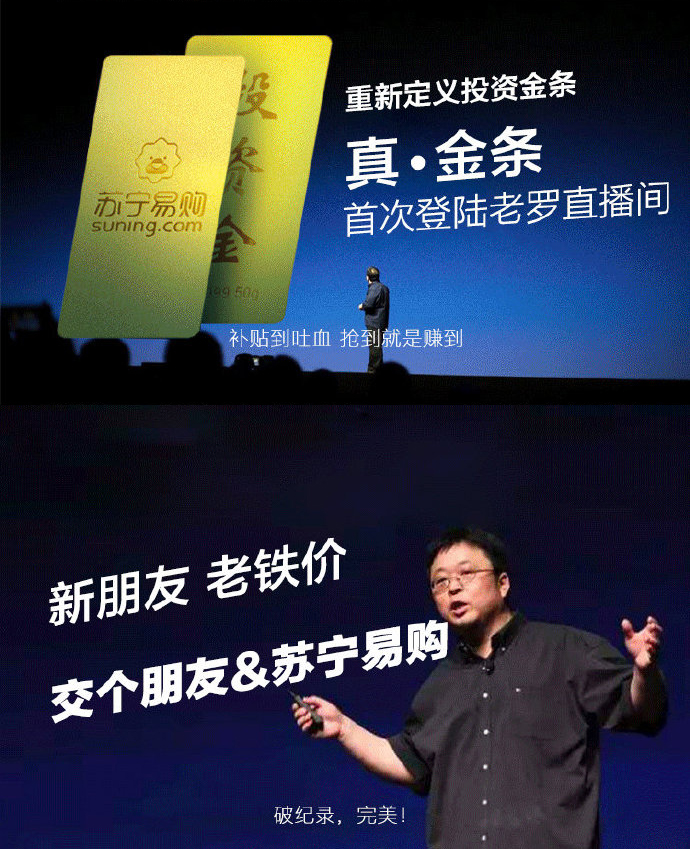818全民黄金珠宝节,苏宁易购罗永浩直播间投资金条上架秒空