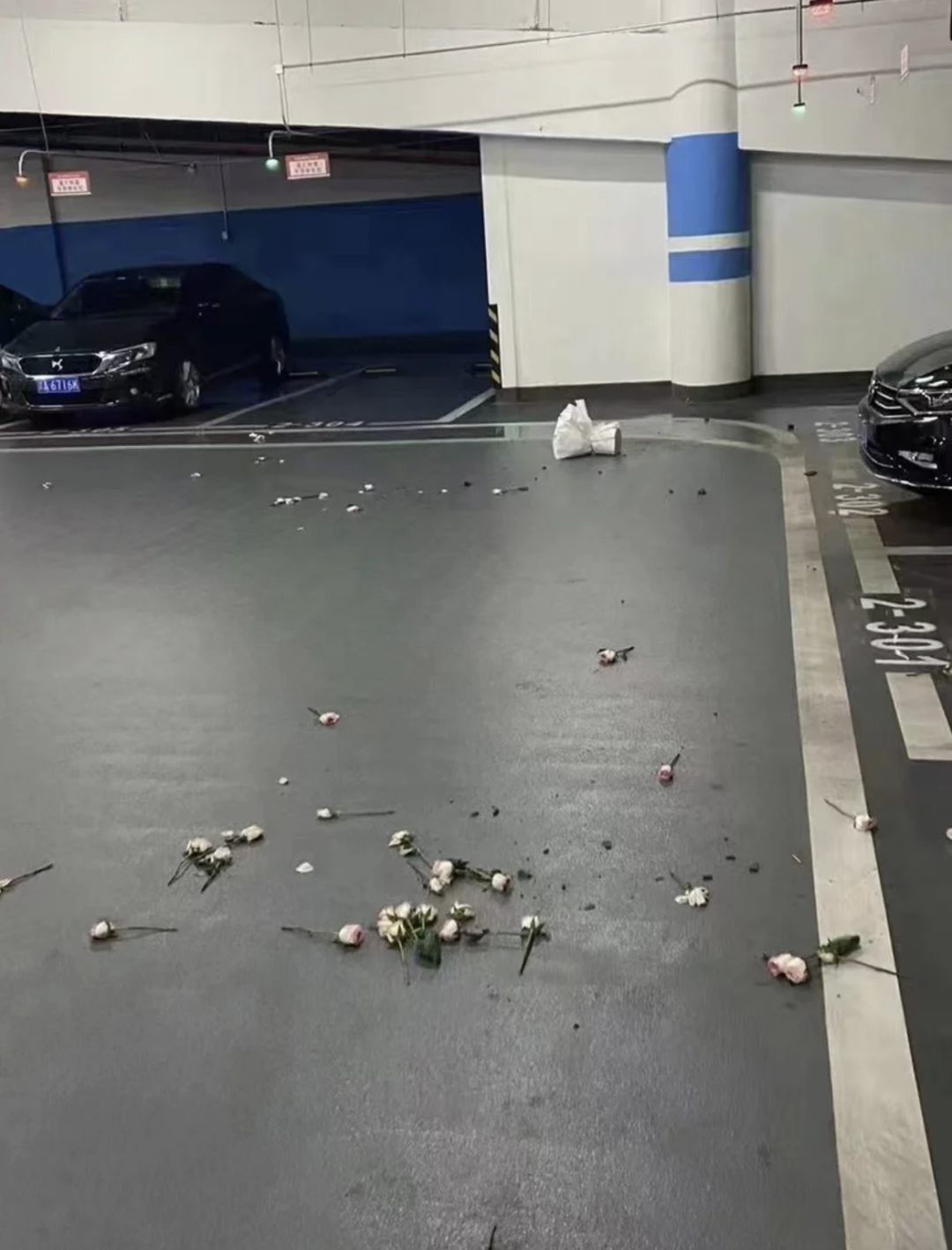 一地狼藉的停车场或上演过一出大戏?