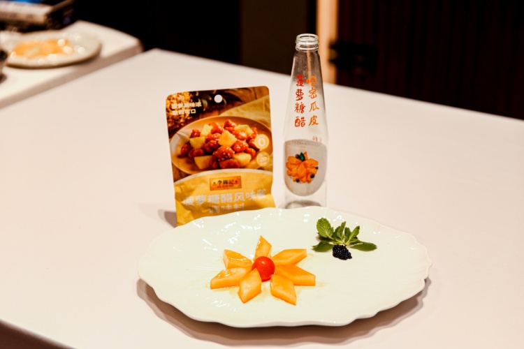 不同于蔬菜根茎的充分利用,现在已是酒店中厨副厨师长的李锦记希望厨师黄文辉带来的是针对哈密瓜皮的“魔法烹饪”,他所使用的哈密瓜皮正来自于活动现场果盘中的哈密瓜:简单改刀成菱形块后,放入沸水中煮熟后倒入李锦记菠萝糖醋酱调味汁后即可。“除此之外,哈密瓜皮还可以切丝,加上李锦记凉拌汁,酸甜可口。”