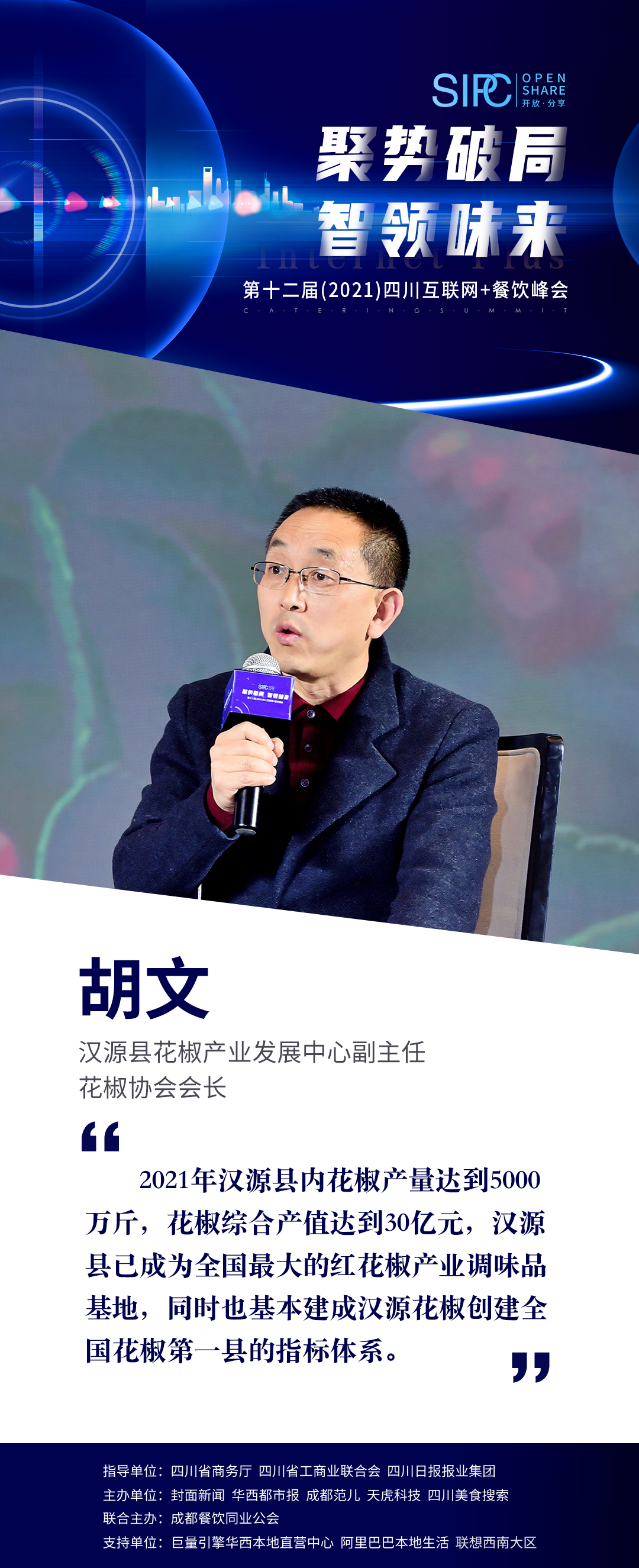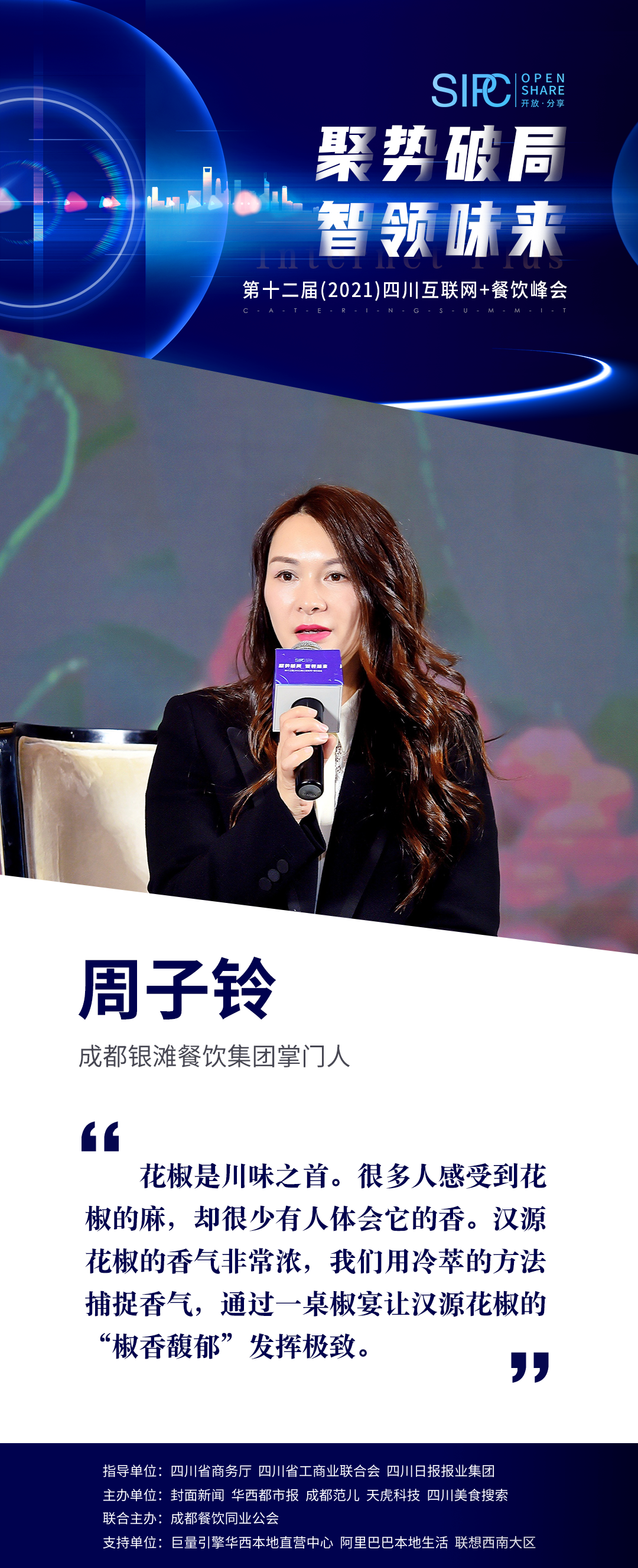 本届峰会特邀汉源县花椒产业发展中心副主任、花椒协会会长胡文与成都银滩餐饮集团掌门人周子铃对话《小花椒·大产业 VS 川味之道·重构边界》。