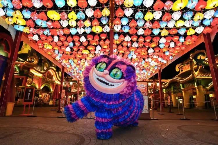 花火巡游 也很热闹非凡。黄金巨马和喜庆舞龙开道,还有巨大的老虎与大家互动。提香灯的古风美人也更为这次巡游添满了年味。