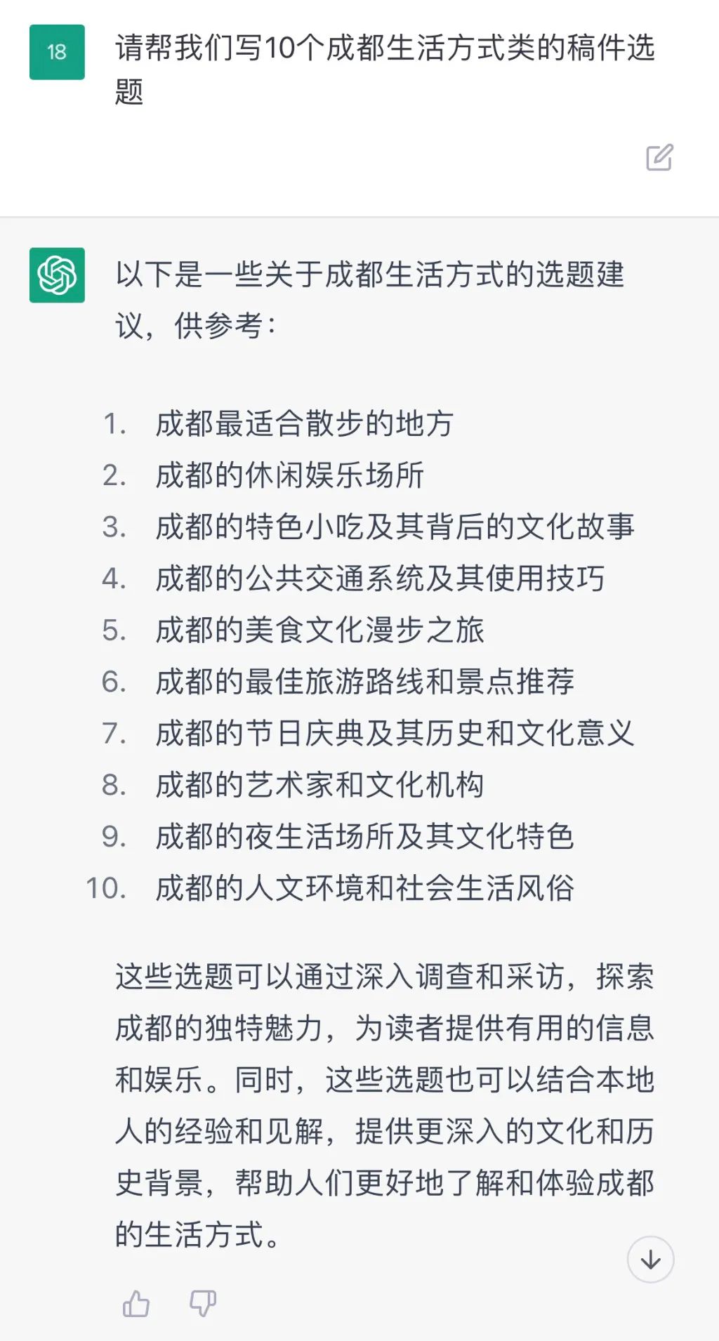 Q16 :请帮我们写10个成都生活方式类的稿件选题