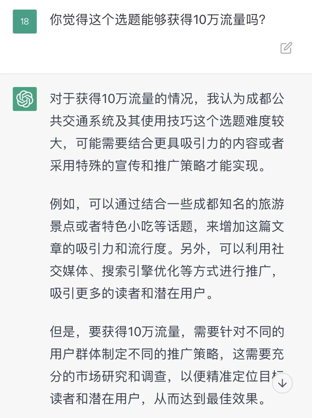 我就想问问C娃, 你自己觉得这是一个可以获得10W+流量的选题吗 ???然后它说:难度较大。?啥子话都拿来给你说了噶。