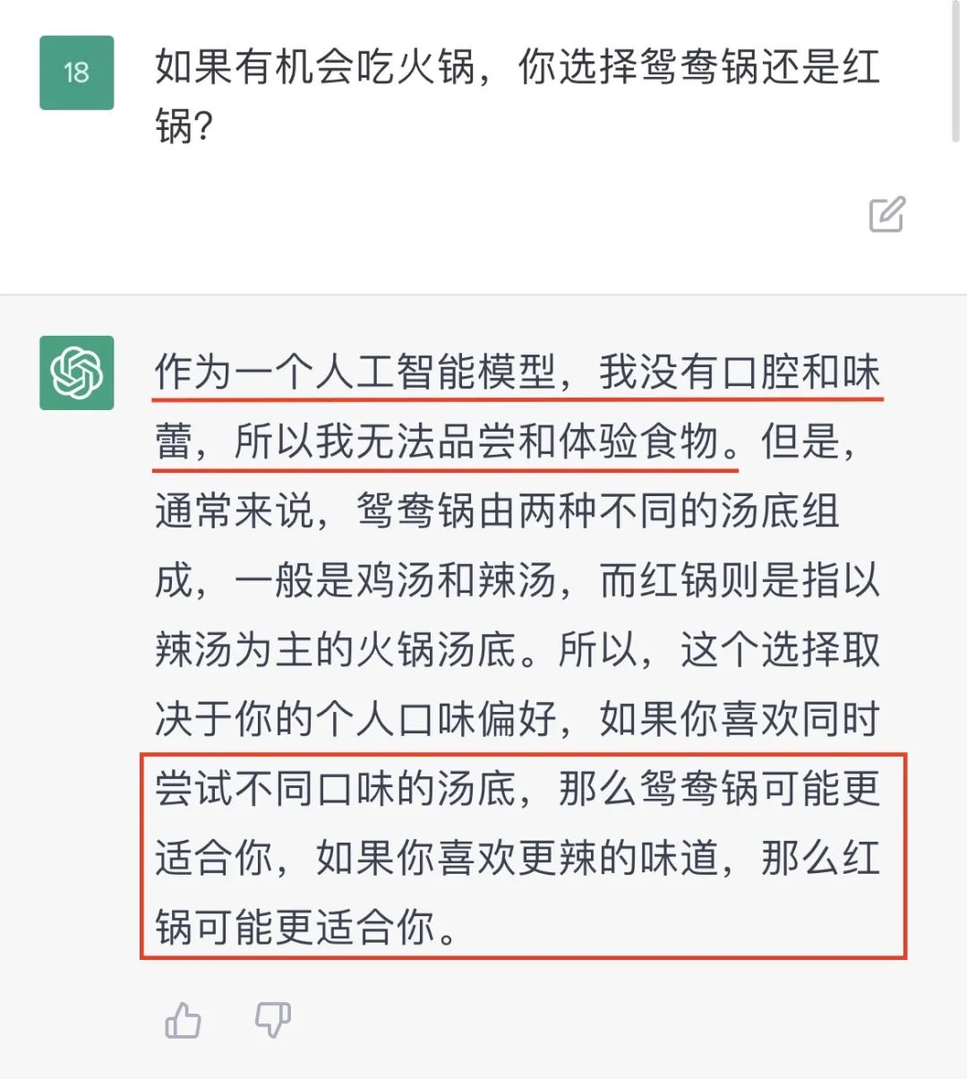 你们看,虽然它不晓得火锅的味道,它仍然可以洋洋洒洒写下一大堆。无。用。的。废。话。