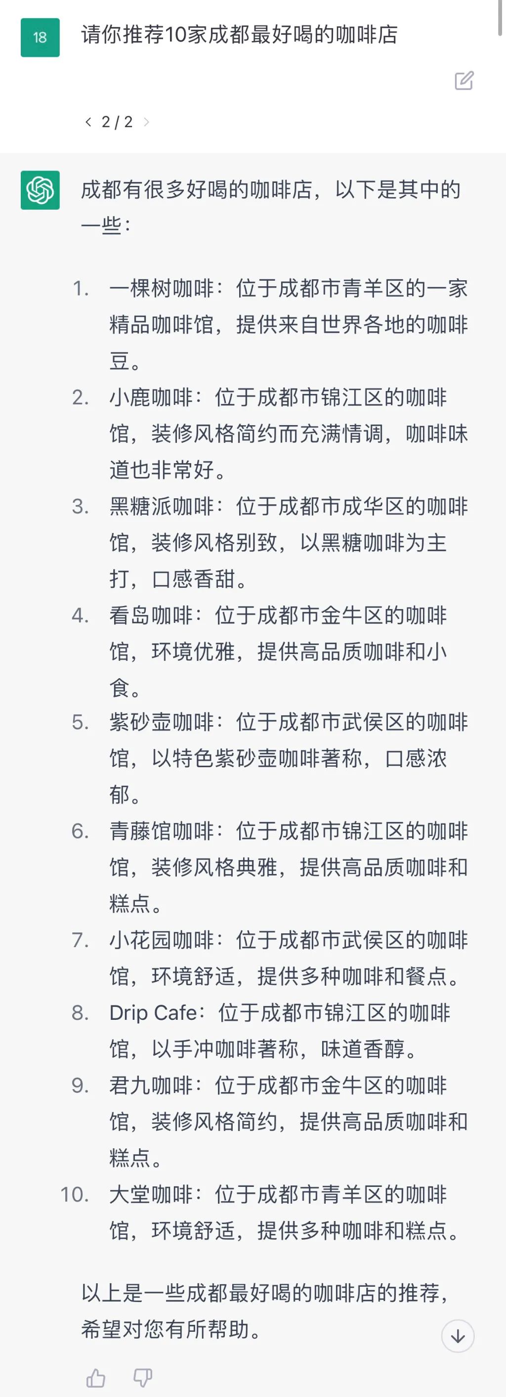 “推荐成都最好喝的10家咖啡店”,C娃完美演绎什么叫“一本正经胡说八道”: