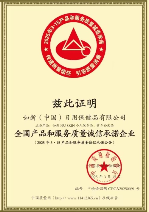 荣誉见证过往,初心照亮前路。2025年的诸多奖项,是对如新过往努力的肯定,更是未来前行的动力。展望未来,如新将继续积极响应国家经济工作部署,秉持“善的力量”,以科技创新赋能产品升级,以绿色实践推动产业转型,以品牌责任凝聚发展共识,以公益行动增进民生福祉,持续深化ESG各领域举措,为全球消费者打造安全、可信赖的美丽健康解决方案,在赋能美好生活、推动社会可持续发展的道路上稳步前行,为“十五五”良好开局贡献企业力量。