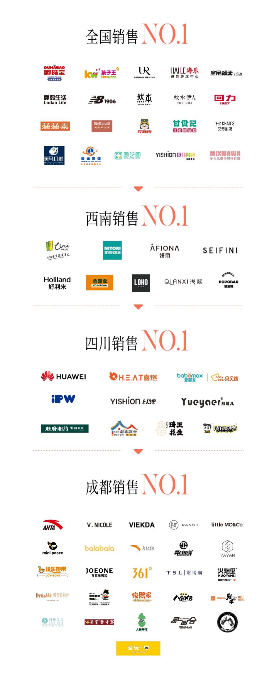 得力于龙湖商业多年成功的运营实力,龙湖成都蜀新天街自官宣来便牵动着业内外人士的关注目光,得到众多品牌青睐。首批入驻品牌中包括中影紫荆国际影城、HAILE黑金店、DUMABAO、全民畅读书店等在内的多家西南首店。在时尚零售方面不仅汇集优衣库、UR、MO&Co.、JNBY、moussy、ECCO、tanni等知名品牌入驻,还有包括adidas originals、KICKS LOUNGE、Champion、Timberland、BOY LONDON在内的年轻潮流运动品牌;餐饮业态方面,汇聚印象泰和园、烤匠、生如夏花、竹涟烧肉、不站、布拉诺等多元美食精选,丰富轻餐、正餐,多家主题餐厅,全方位打造郫都美食高地;同样,在亲子及生活业态方面,国内大热品牌玩具反斗城、孩子王、NITORI、蔚来、小鹏汽车等悉数入驻,极大满足了亲子家庭及品质青年日常生活需求。