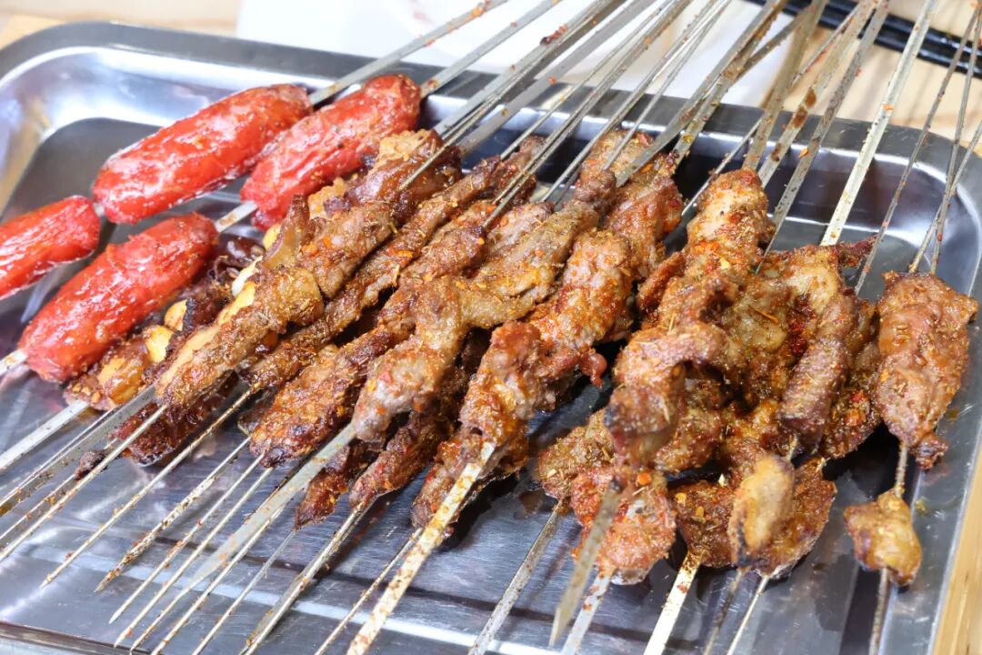 撸串也是陕西人必备的技能。他家的烤串调料用得更加简单粗暴,用的铁签签。现烤牛肉串