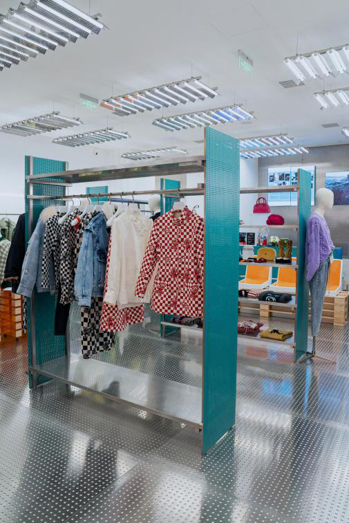 这里不单有时髦的衣服,也是一个兼具趣味与品位的艺术空间,向外界传递着UOOYAA时髦大妞的形象和不断创新的品牌文化。店内设计秉承UOOYAA 一贯独特的设计风格,采用时髦的未来感银色为主色调,以简胜于繁的空间线条塑造出一方趣味天地,最新的2020SS系列服装排列精致的落入视线,通过服装语言展现UOOYAA “巾帼不让”的女性力量,期待进店探索。