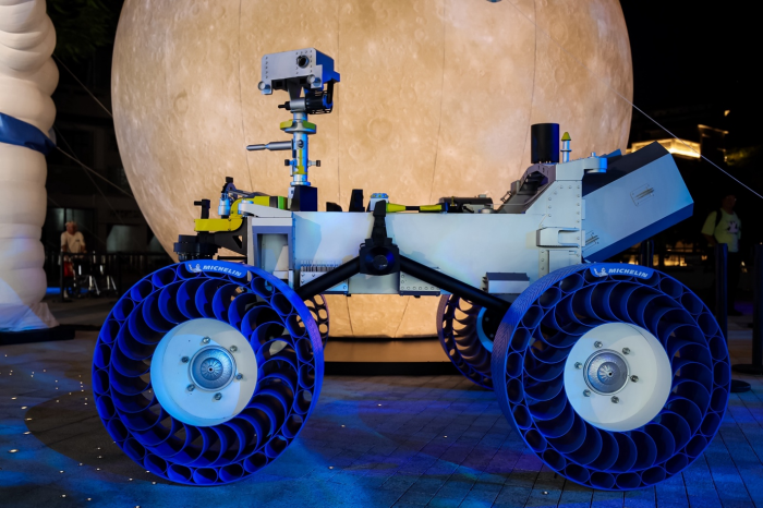 面向更遥远的未来,米其林不断延展品牌的探索旅程,凭借领先的聚合物复合物解决方案,米其林为月球探测车研发的免充气轮胎已在去年进博会亚洲首秀。该轮胎能承受太空环境中从-240℃至超过100℃的剧烈温差,并在强辐射环境和松软月壤中仍保持稳定抓地性与抗磨损能力,能够承受数百万次形变循环。这一前瞻性项目不仅代表着人类探索未知的勇气,也将通过技术反哺,转化为地面应用的实际解决方案。