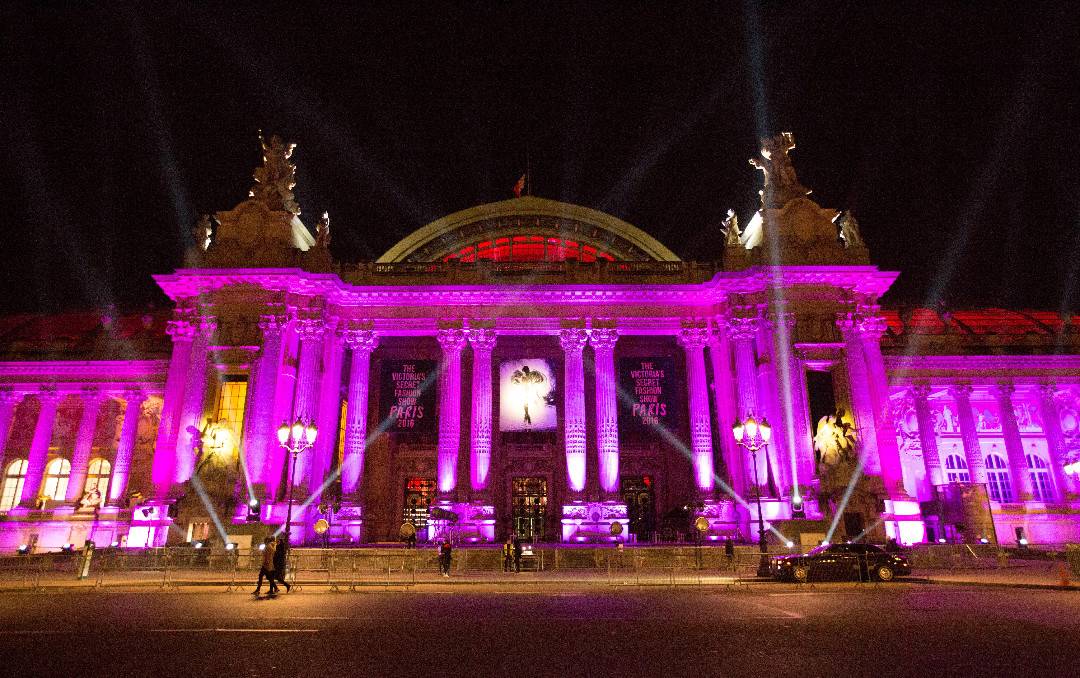 ▲法国巴黎,2016维多利亚的秘密年度秀在巴黎大皇宫举行,夜晚的粉色灯光秀美轮美奂。