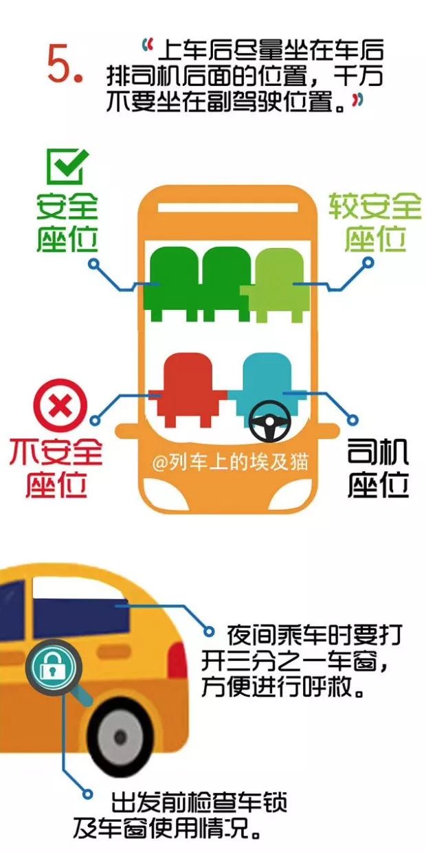 我们除了对网约车平台一再一再提出严厉“谴责”,更有效的还是提高自我防范意识。看图学习,如何在网约车中保护自我!