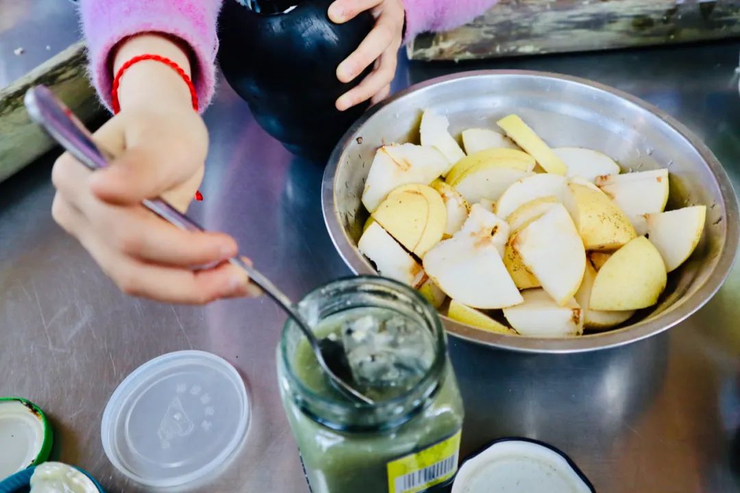 看到小朋友们对黑熊的食物这么感兴趣,小月姐姐带着大家来到了最期待的黑熊厨房,由老师组织大家一起制作丰容食物。这也是活动后各位小朋友反应最喜欢的环节,原因竟是——因为可以做黑暗料理!