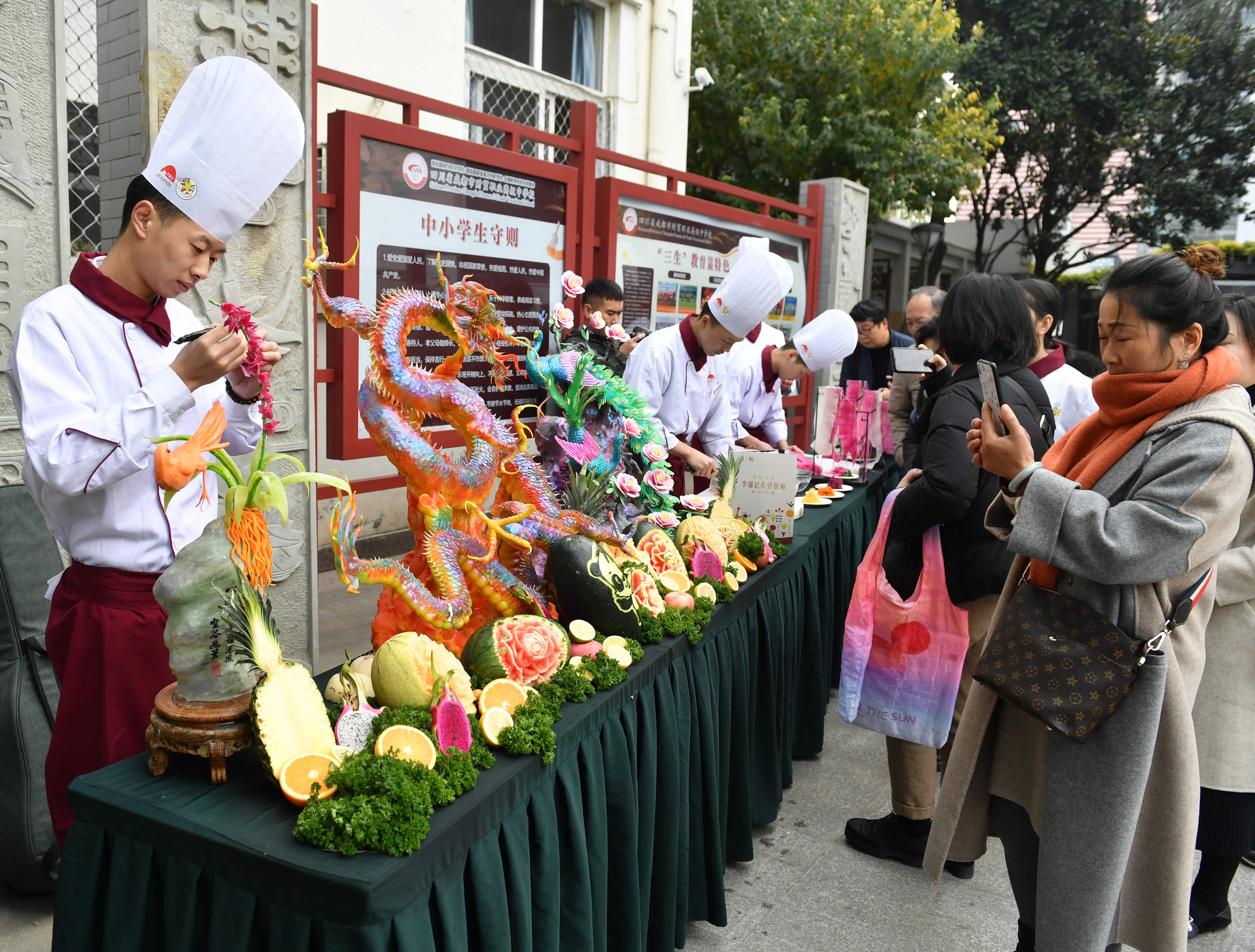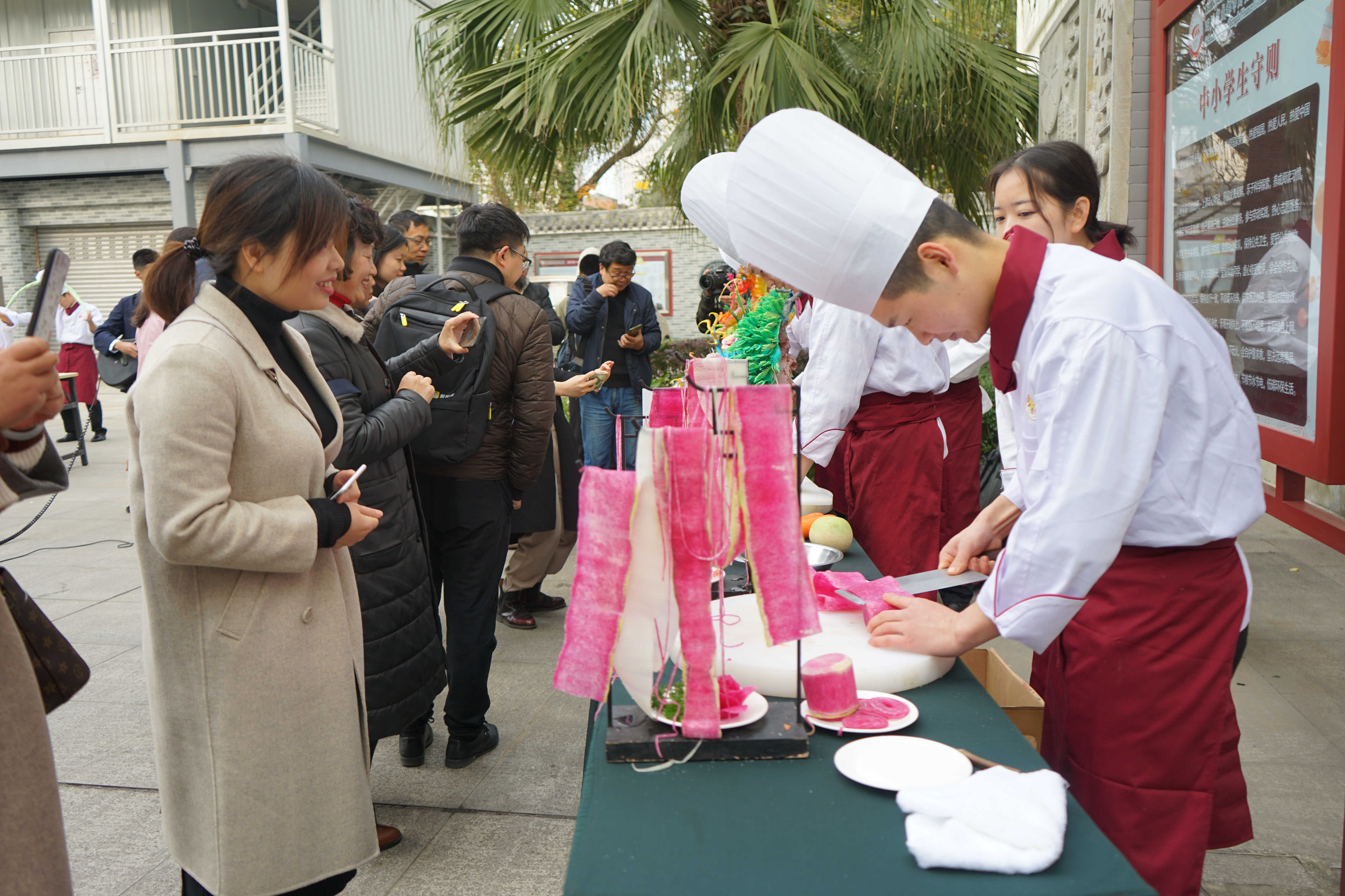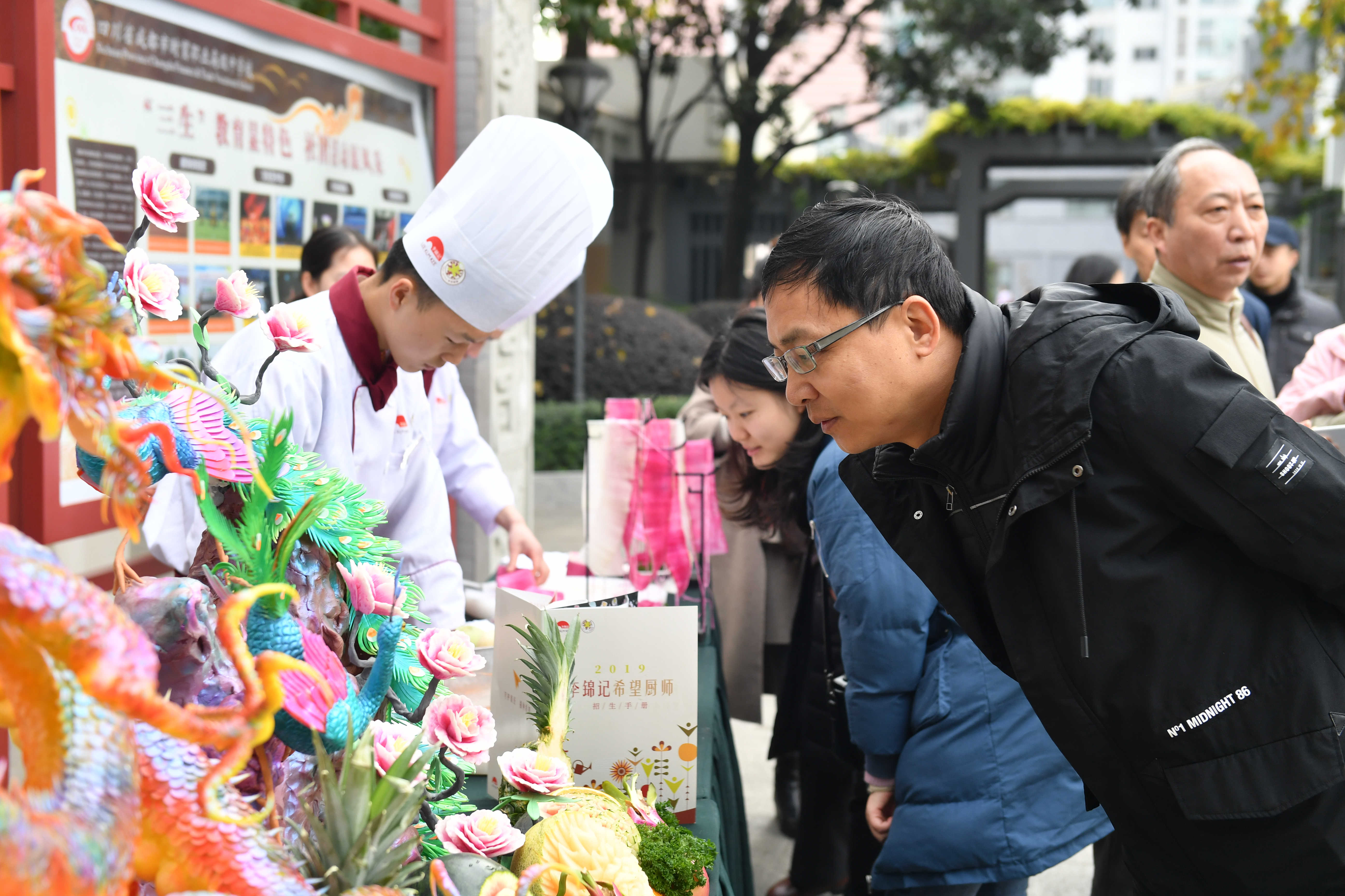 事实上,李锦记希望厨师入校后开始学的专业课不仅有刀工,还有食品雕刻。活动现场近2米的雕刻展台将水果、蔬菜,甚至面塑结合在一起,更有两位希望厨师现场演示如何利用心里美萝卜雕刻月季,其中一位希望厨师正是今年刚毕业的张文福,他的故事感动了一位媒体从业者:张文福遭遇出生时被父母遗弃,年少时养父去世,初中毕业时遇到“李锦记希望厨师项目”,顺利通过报名、笔试和面试,成为一名希望厨师在成都财贸职高学习中餐,专研技术,组织班级进行爱心义卖活动,获得2019年度“全国最美中职学生”的称号。如今,张文福已在成都银杏餐饮神仙树店墩子岗位工作一年多,表现稳定优异,未来可期。